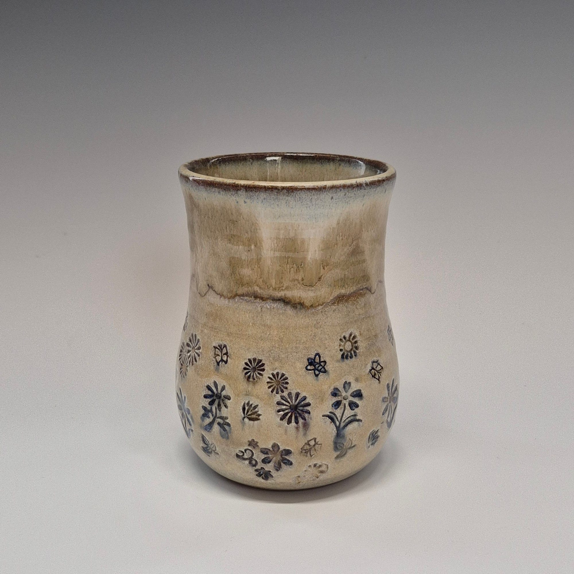 Hand-thrown, hand-stamped, and hand-signed using sturdy and functional brown stoneware clay manufactured in Montana. Each piece is hand-brushed with at least 6 coats of glazing, ensuring a durable finish. This pottery is built to last, made to be used and bring a little smile to your day.