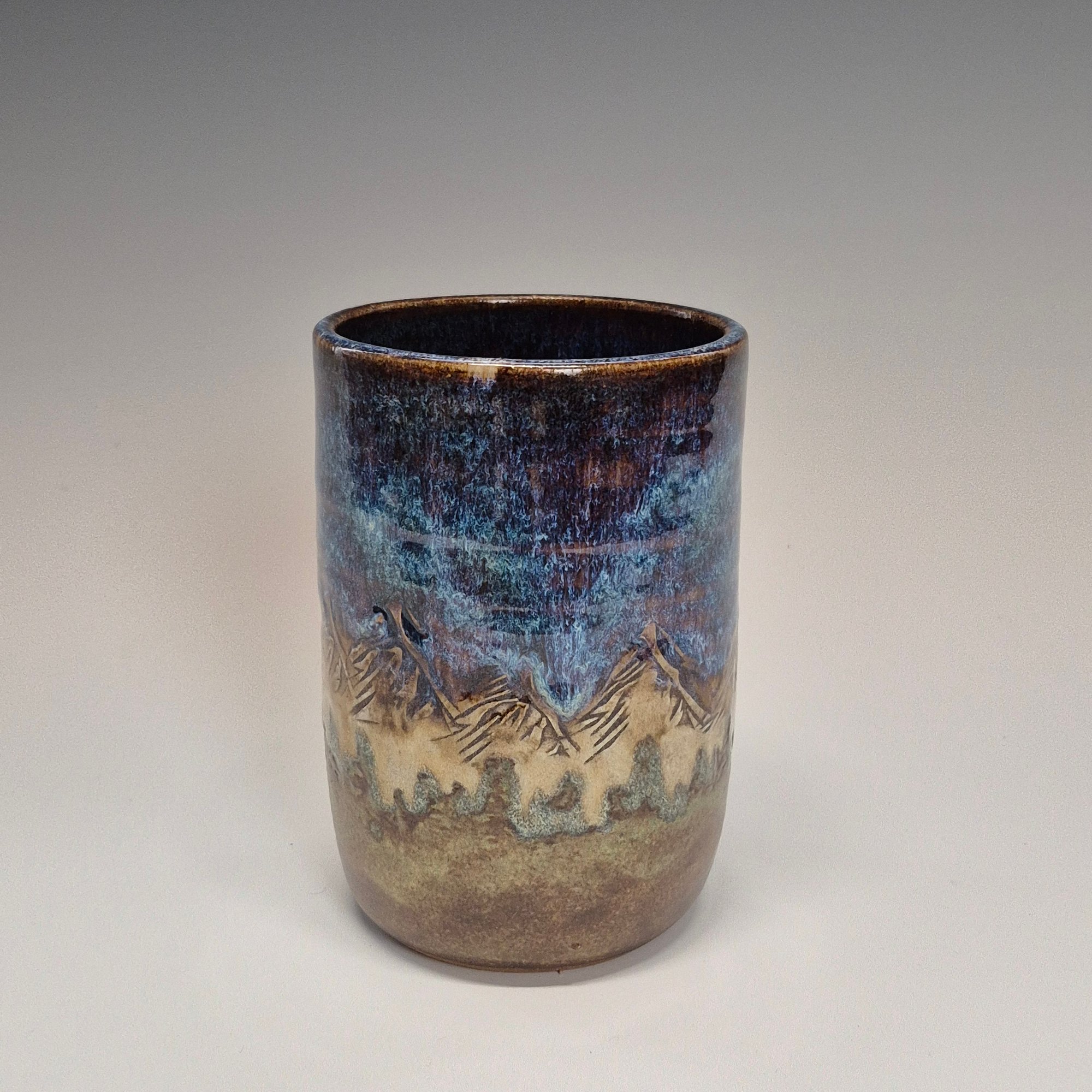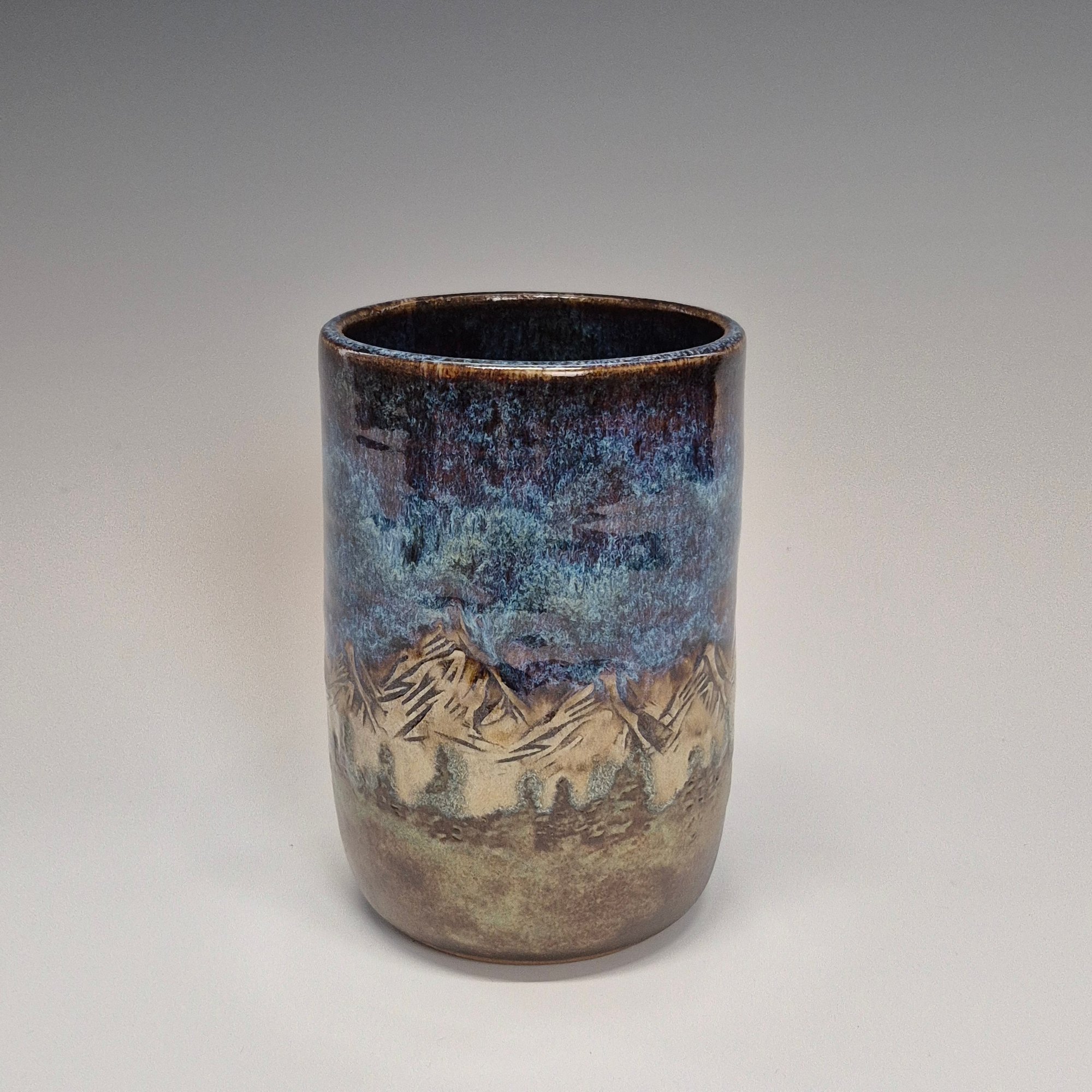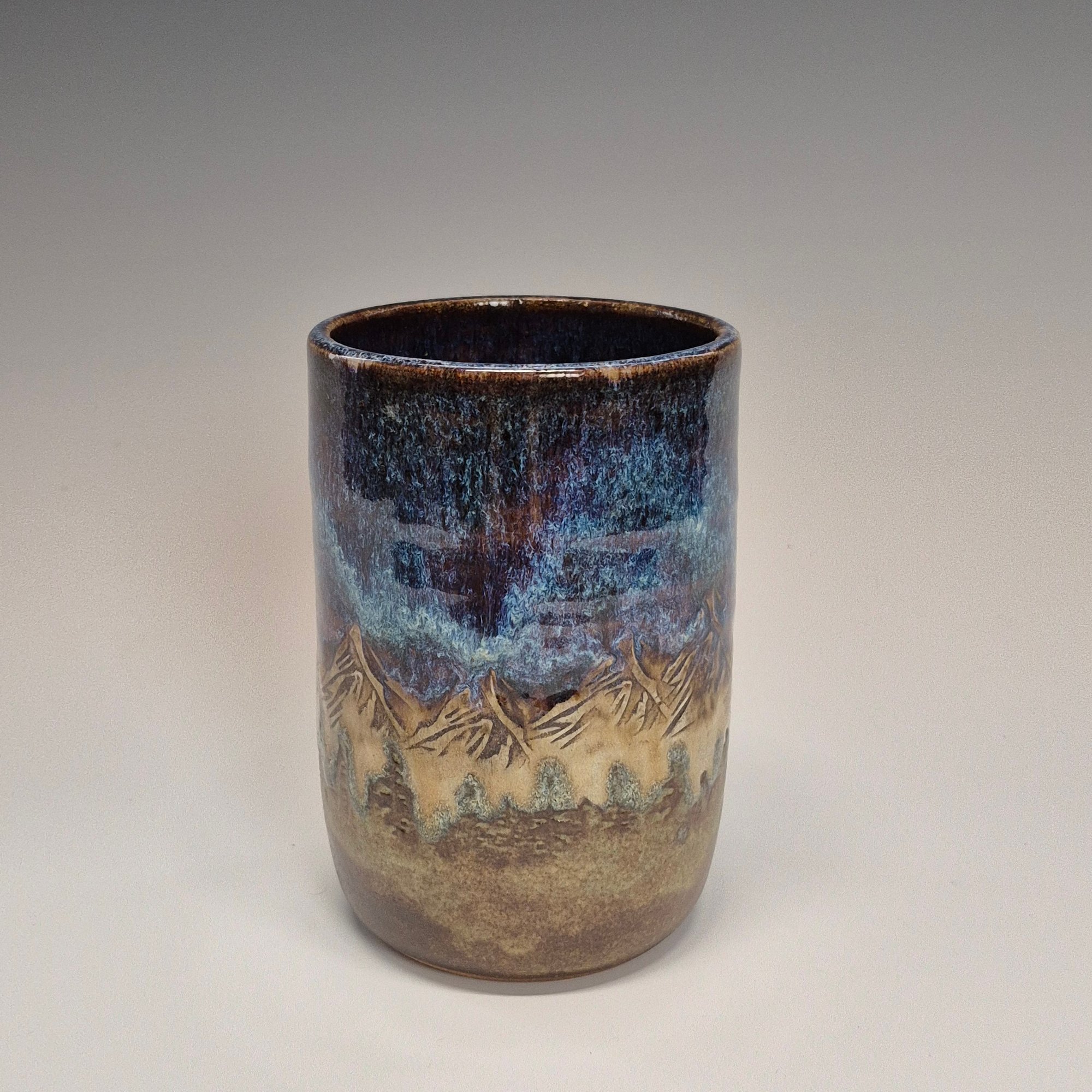 Hand-thrown, hand-stamped, and hand-signed using sturdy and functional brown stoneware clay manufactured in Montana. Each piece is hand-brushed with at least 6 coats of glazing, ensuring a durable finish. This pottery is built to last, made to be used and bring a little smile to your day.