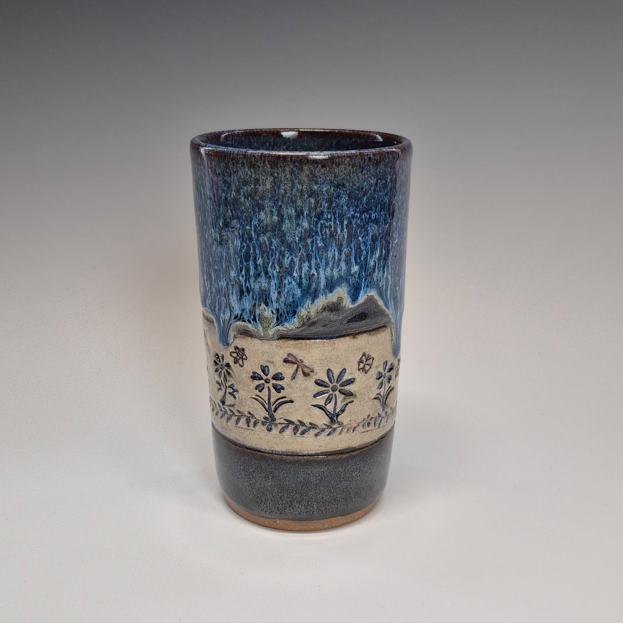 14oz. Tumbler, Peaceful Posies, Night Sky blue