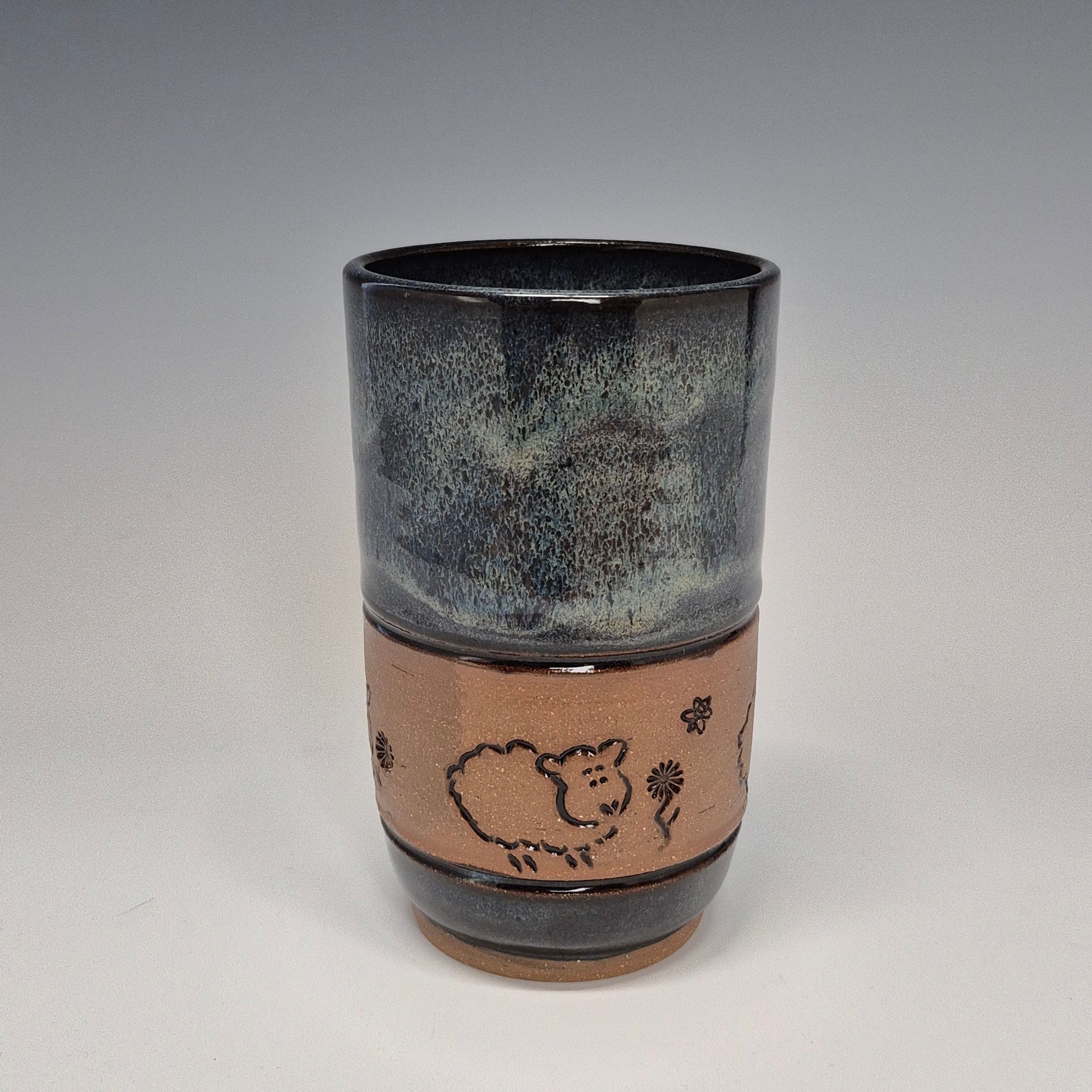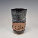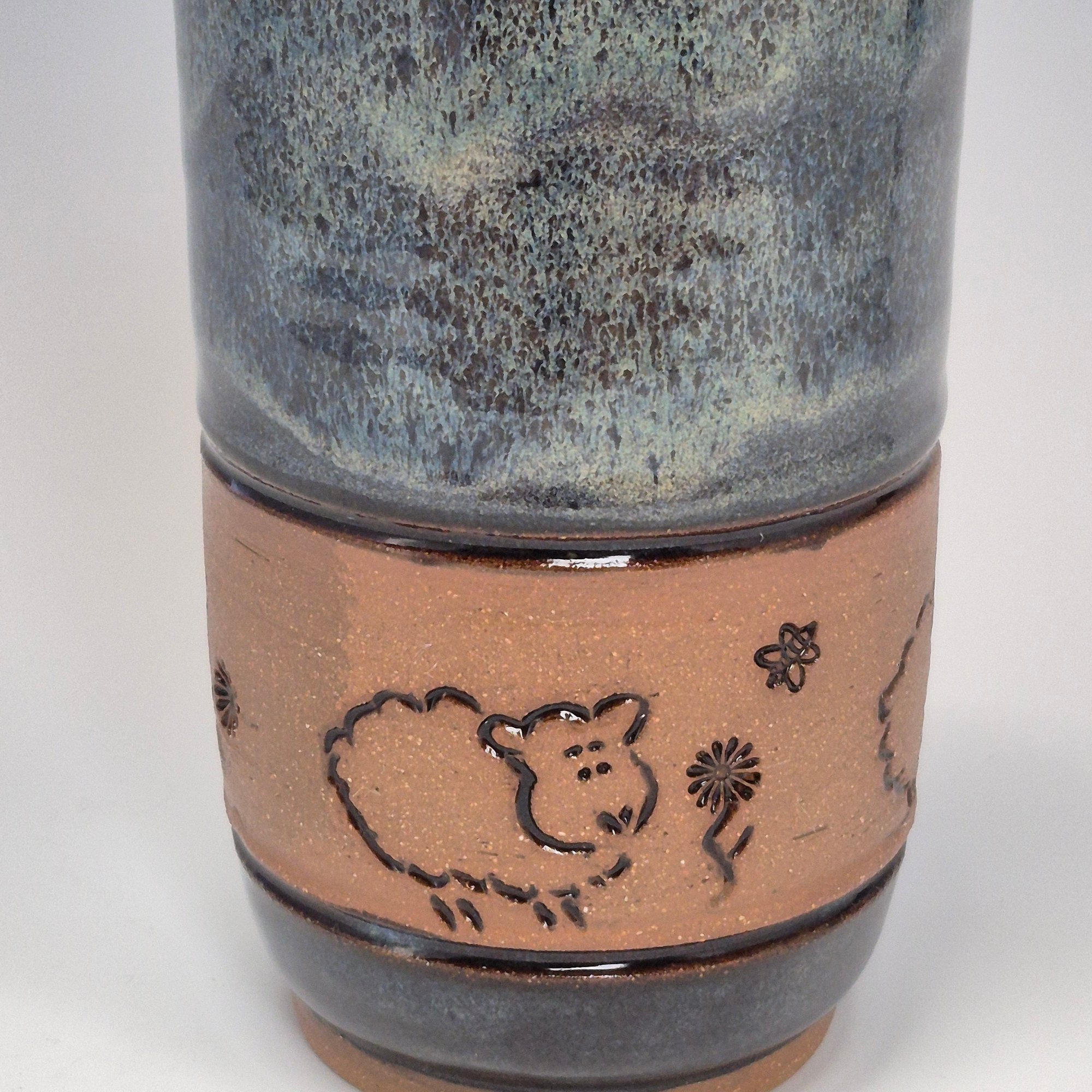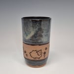 Hand-thrown, hand-stamped, and hand-signed using sturdy and functional brown stoneware clay manufactured in Montana. Each piece is hand-brushed with at least 6 coats of glazing, ensuring a durable finish. This pottery is built to last, made to be used and bring a little smile to your day.