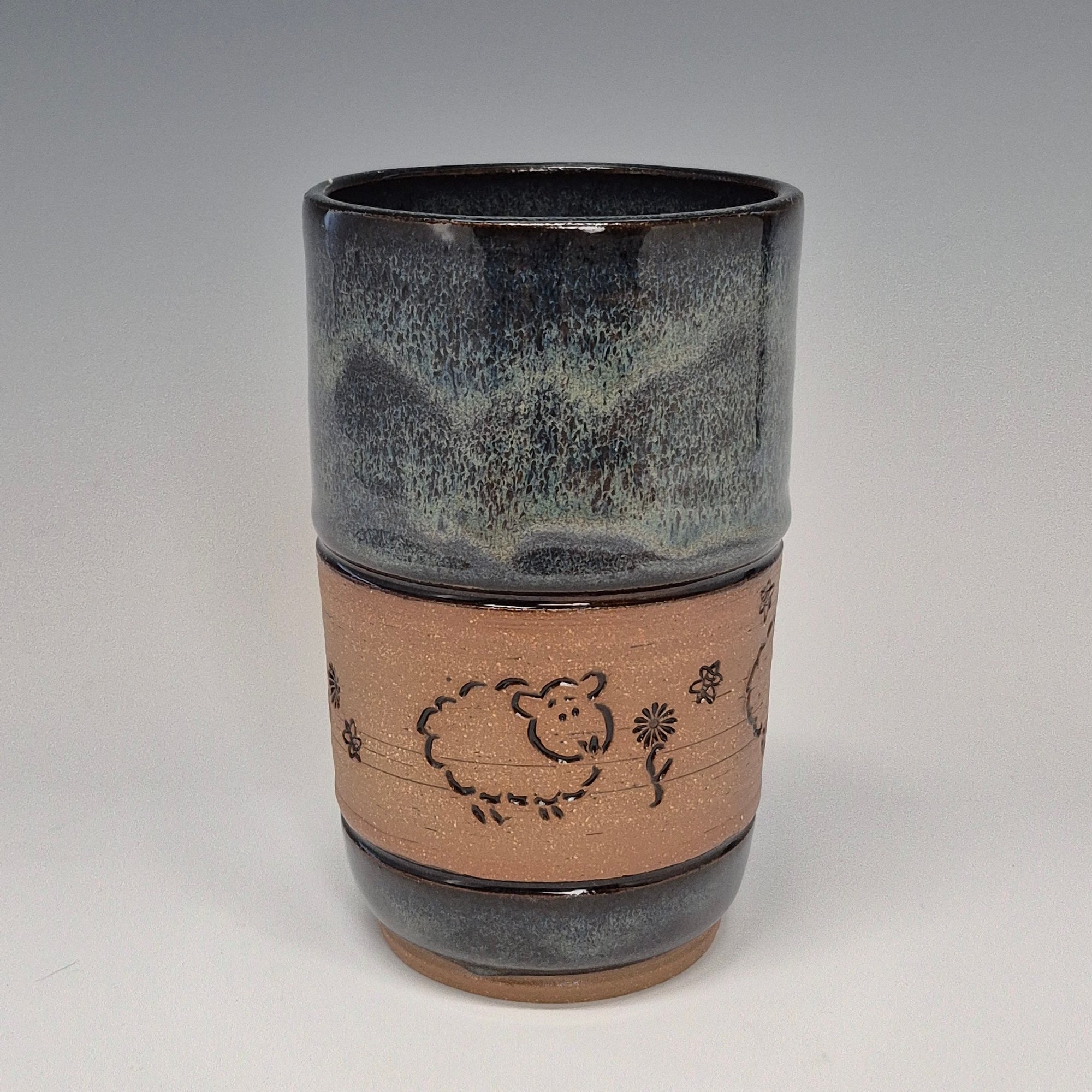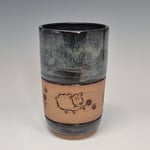 Hand-thrown, hand-stamped, and hand-signed using sturdy and functional brown stoneware clay manufactured in Montana. Each piece is hand-brushed with at least 6 coats of glazing, ensuring a durable finish. This pottery is built to last, made to be used and bring a little smile to your day.