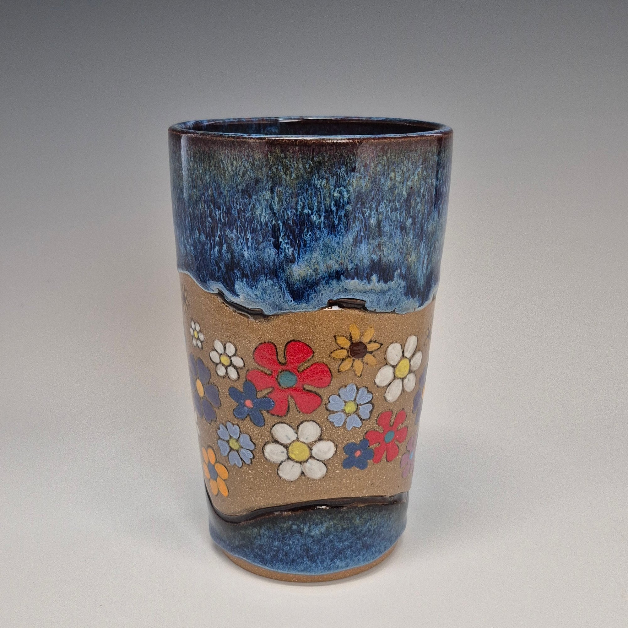 Hand-thrown, hand-stamped, and hand-signed using sturdy and functional brown stoneware clay manufactured in Montana. Each piece is hand-brushed with at least 6 coats of glazing, ensuring a durable finish. This pottery is built to last, made to be used and bring a little smile to your day.