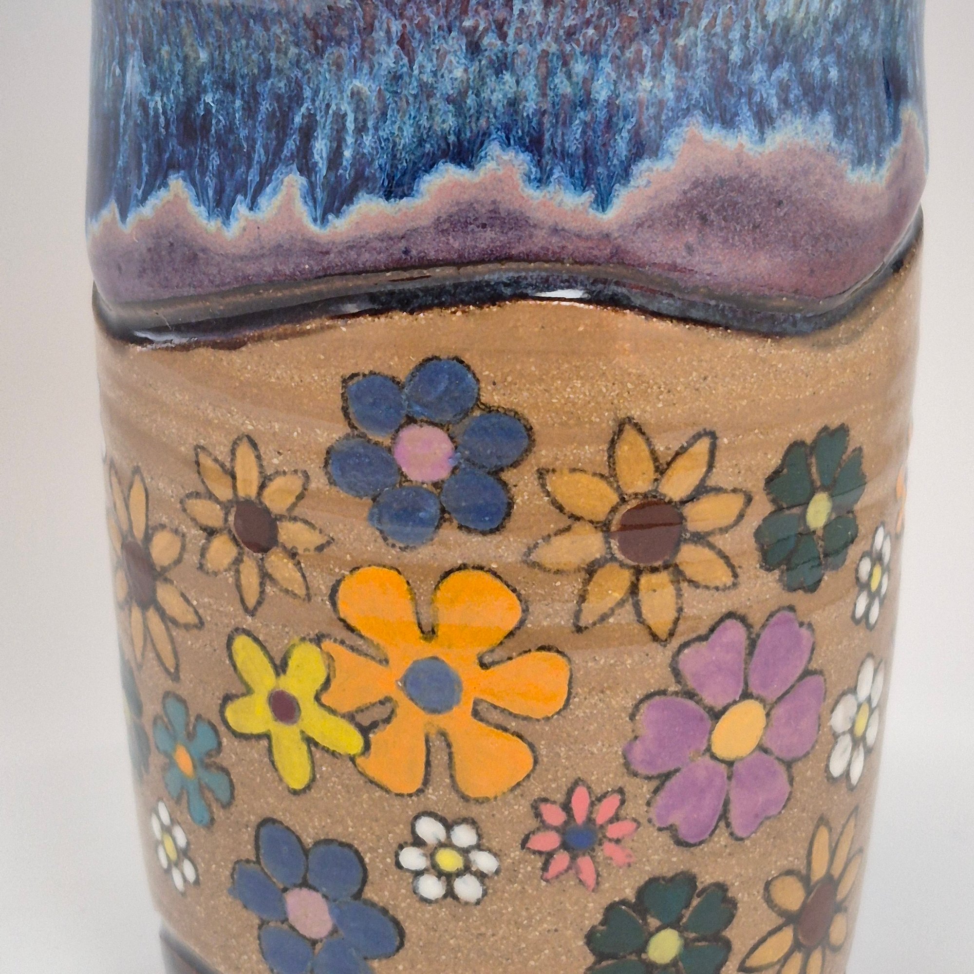 Hand-thrown, hand-stamped, and hand-signed using sturdy and functional brown stoneware clay manufactured in Montana. Each piece is hand-brushed with at least 6 coats of glazing, ensuring a durable finish. This pottery is built to last, made to be used and bring a little smile to your day.