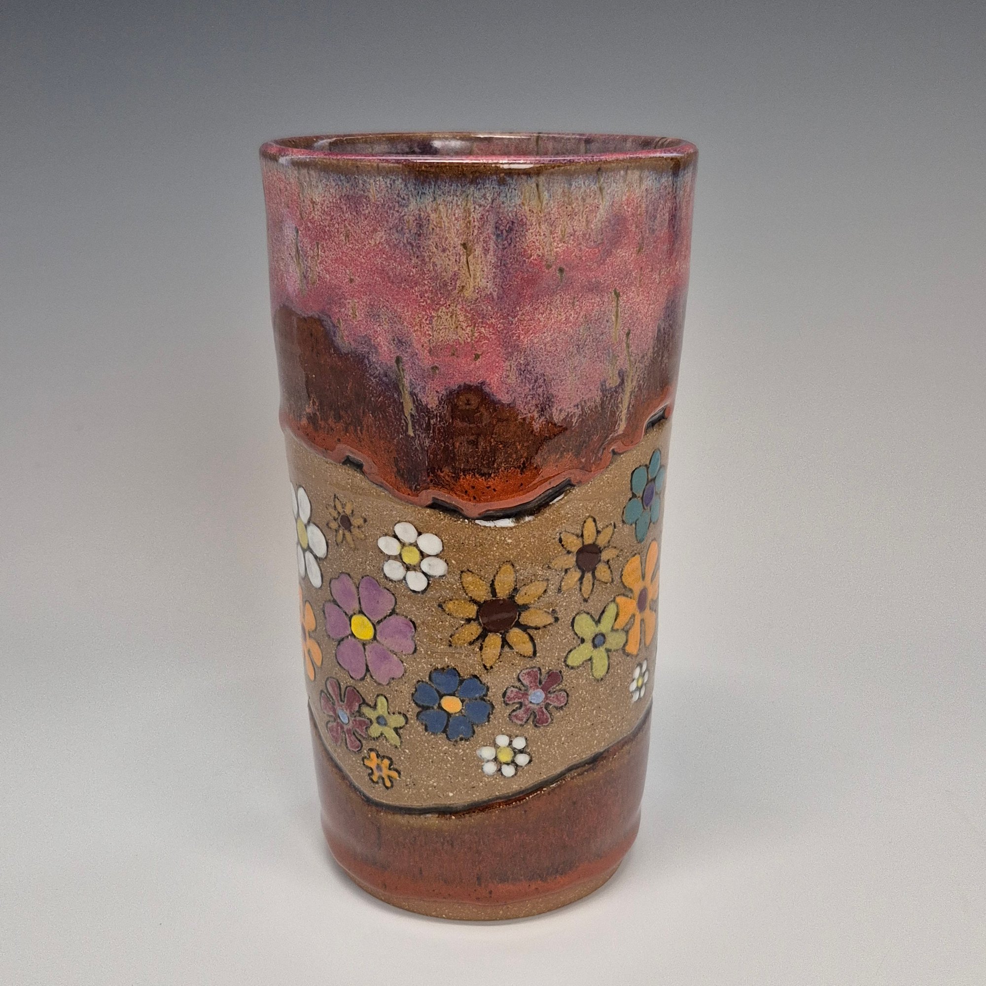 Hand-thrown, hand-stamped, and hand-signed using sturdy and functional brown stoneware clay manufactured in Montana. Each piece is hand-brushed with at least 6 coats of glazing, ensuring a durable finish. This pottery is built to last, made to be used and bring a little smile to your day.